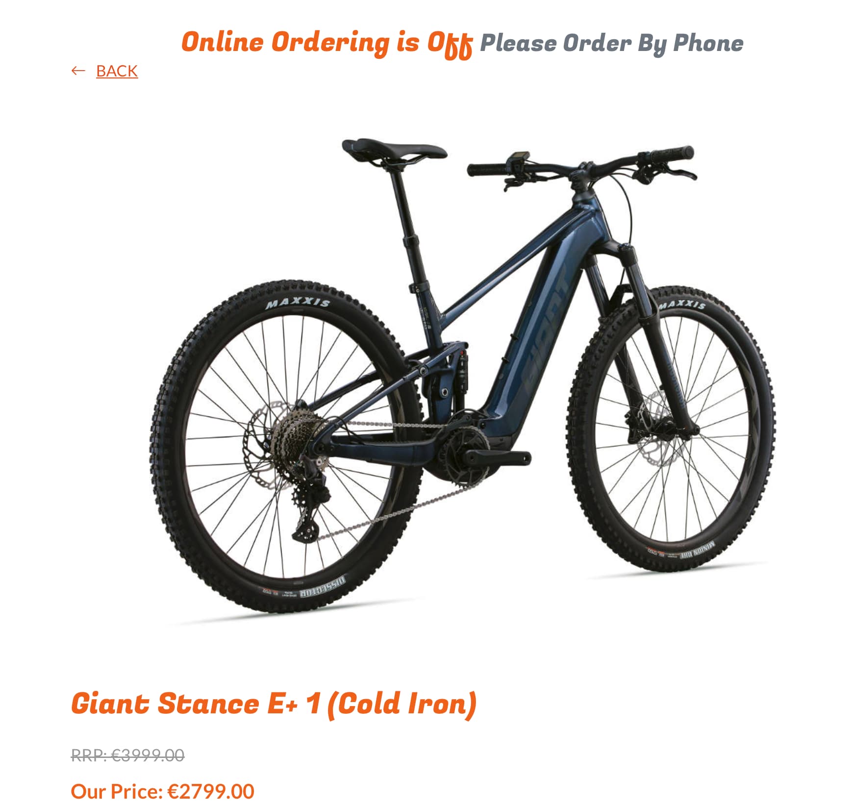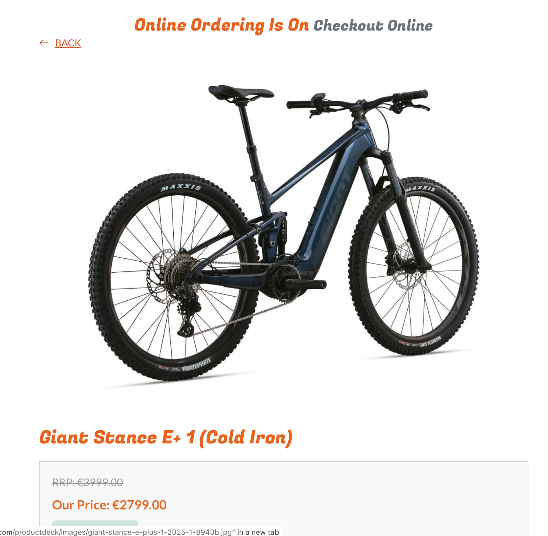 When the cart is on, a different bit of content can be displayed, in the example it’s a header saying “Online ordering is on, checkout online”