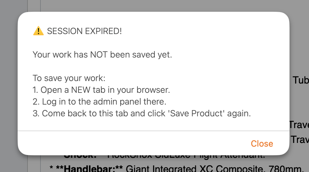 So I’ve built in a fail-safe: If this happens in ProductDeck, you don’t lose any work. A popup will appear telling you the session has timed out, but it saves your work in thet background. You then just log back in, in another window, come back to the page, and save. No work lost! I think this is the one feature I’m most pleased with. Cus even though everyone of us suffers this issue, devs almost never bother to manage it correctly. Well I’n not a dev, I’m a user. So I have!