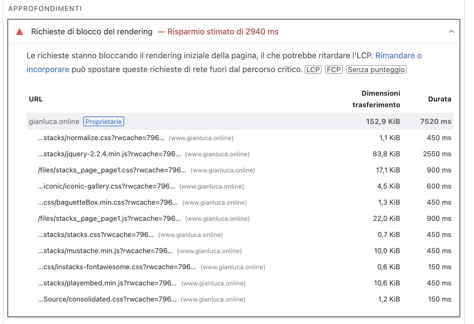 I am using Poster 2 and Source, and the main problem flagged by Lighthouse is ‘Eliminate render-blocking resources’, with an estimated saving of 2940 ms.