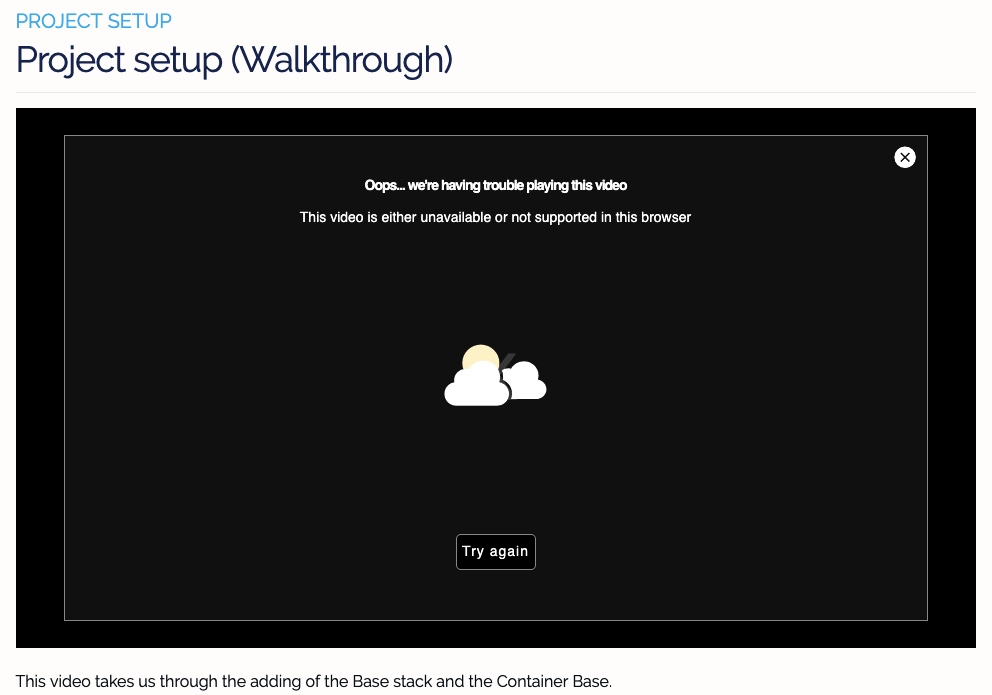 All of the course videos in the Source Academy show a “oops, having trouble” notice.