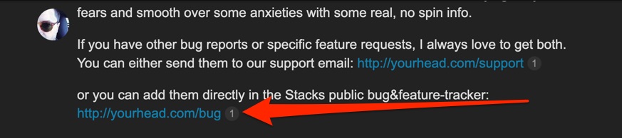 It’s on GitLab (it’s like github – but they ley out have a public bug-tracker on a private repository – which is kind of useful) – but I usually make nice easy pneumonic links at yourhead.com – this one is no substitute, so you can just type https://yourhead.com/feature or https://yourhead.com/bug and it goes to the right place. I wish the whole web worked that way!