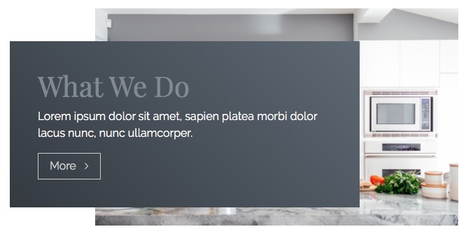 Interior design and particularly kitchen images often have a lot of white space, which is perfect for flowing the text over it, without the need to have a high contrast BG colour under it.